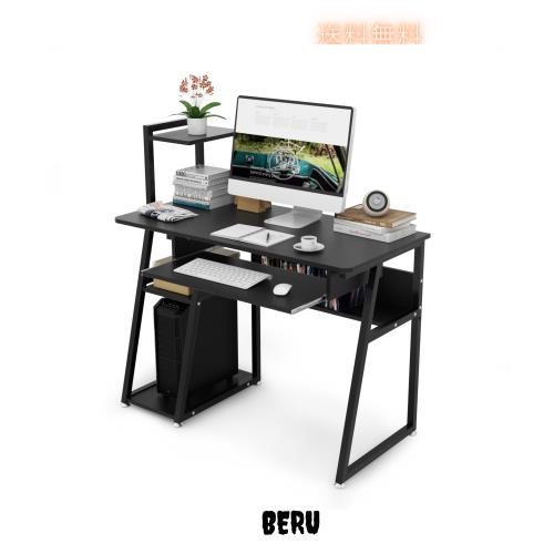 DEWEL パソコンデスク キーボードスライダー付 天板幅100cm 机 3段収納ラック付 ゲーミングデスク 総耐荷重100kg メラミン加工 省スペー