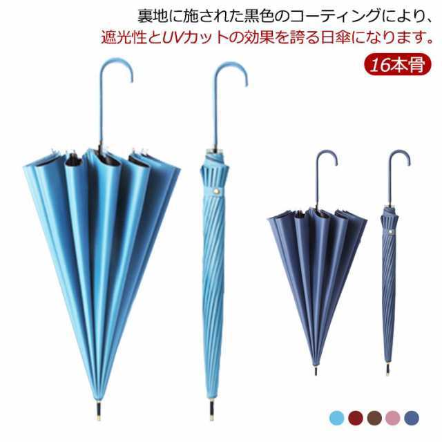 傘 16本骨傘 日傘 完全遮光 ブラックコーティング UVカット 長傘 晴雨兼用 レザー調ハンドル レディース メンズ 16本骨 大きめ 軽量 おしゃれ 無地 大きい オシャレ シンプル 丈夫 上品 プレゼント 耐風 超撥水 かさ 折れにくい ワンタッチ 紫外線カット かわいい 梅雨