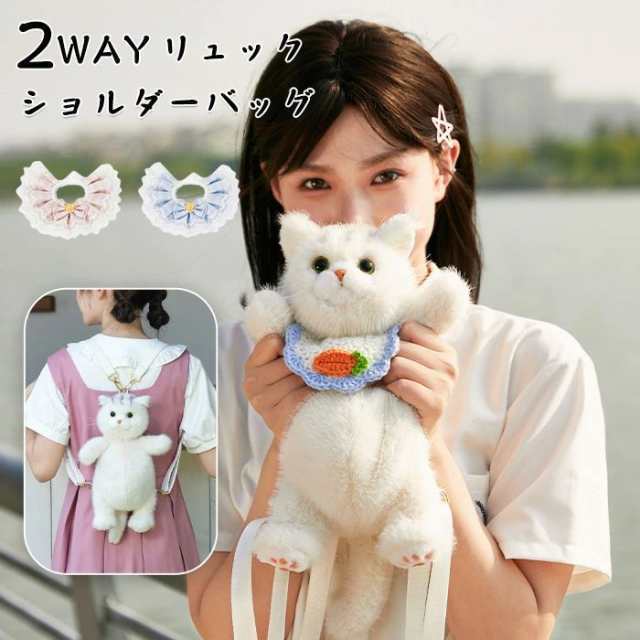 猫型バッグ 猫 ぬいぐるみ ショルダーバッグ 2WAY リュック 斜め掛け 肩がけ 猫型 バッグ ファー バッグ レディース 女の子 ファー 鞄 カバン 雑貨 猫 リアル 猫好き もふもふ 可愛い ポーチ 長毛 ウエスト・ハイランド・ホワイト・テリア 高級感 個性的 動物 ペット 癒し