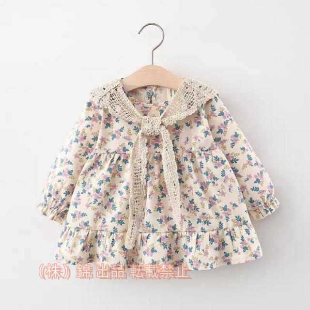キッズワンピースベビードレス女の子取外可能襟付けドレス長袖株式会社錦小花柄子どもワンピースベビー洋服セレモニードレス赤ちゃんワンピース出産祝い