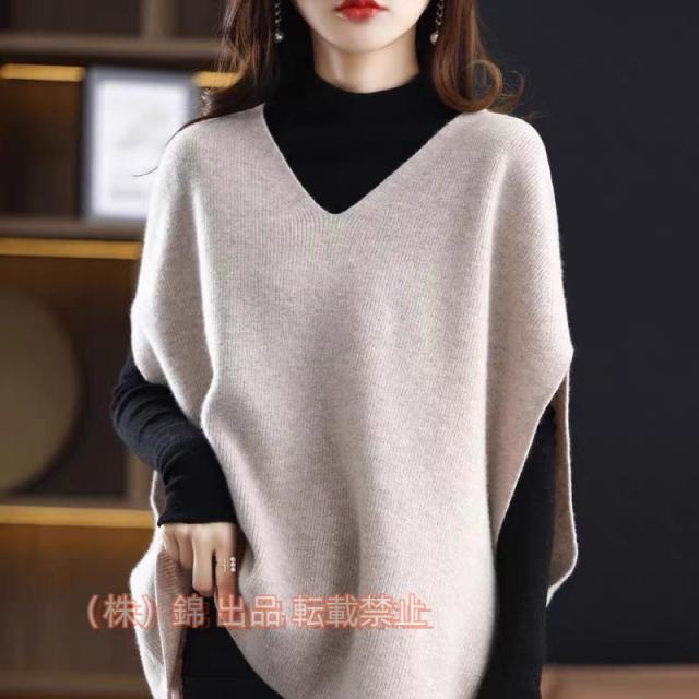 ニットベスト レディース ノースリーブ トップス スウェット Vネック カールネック レイヤード 株式会社錦プルオーバー タンクトップ サイドスリット