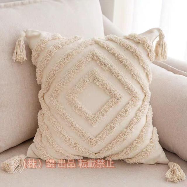 クッションカバー45×4530×50ホワイトマクラメコットンフリンジタッセル韓国インテリア北欧ボヘミアン株式会社錦シャギーコットン100%角型アイボリー