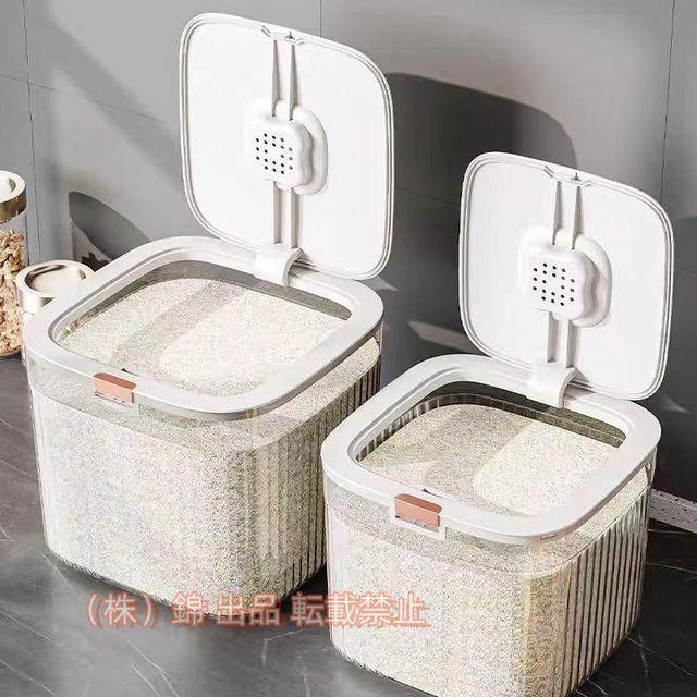 商品詳細カラー:ホワイト、ダークグリーン対応サイズ:5kg 10kg製品素材:PP +PET商品サイズ:5kg(約)横21.5×奥行き21.5×高さ18.5cm10kg(約)横27.2×奥行き27.2×高さ25.5cmー対応サイズ:5kg 10kgフタはしっかり密閉できるパッキン付きで、お米をホコリや湿気から守ってくれます。全面が大きく開くからお米の出し入れもラクラク。中身が確認しやすいようクリア素材で、取り外しも可能なのでお手入れカンタン。便利な計量カップ付きです。