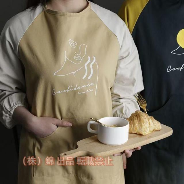 ●北欧風おしゃれな長袖タイプ割烹着!秋冬に適!