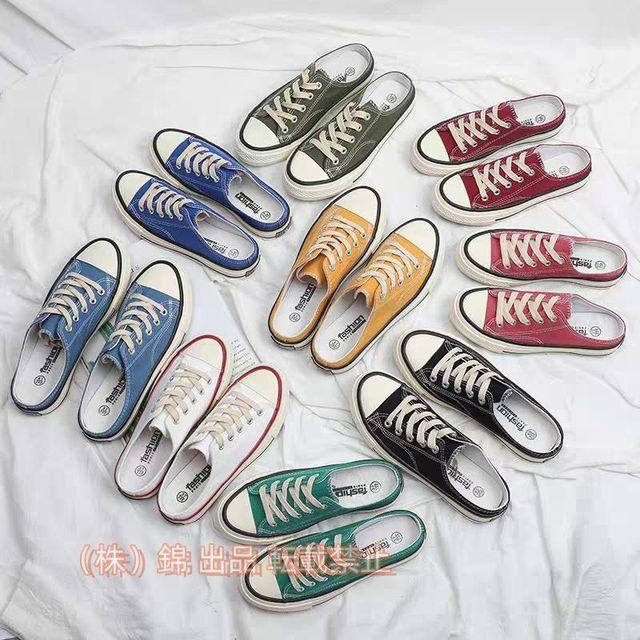 スリッポンメンズかかとなしスニーカーカジュアルキャンバスサンダルレースアップローカットぺたんこ靴おしゃれ株式会社錦スリッパサボサンダル通勤通学