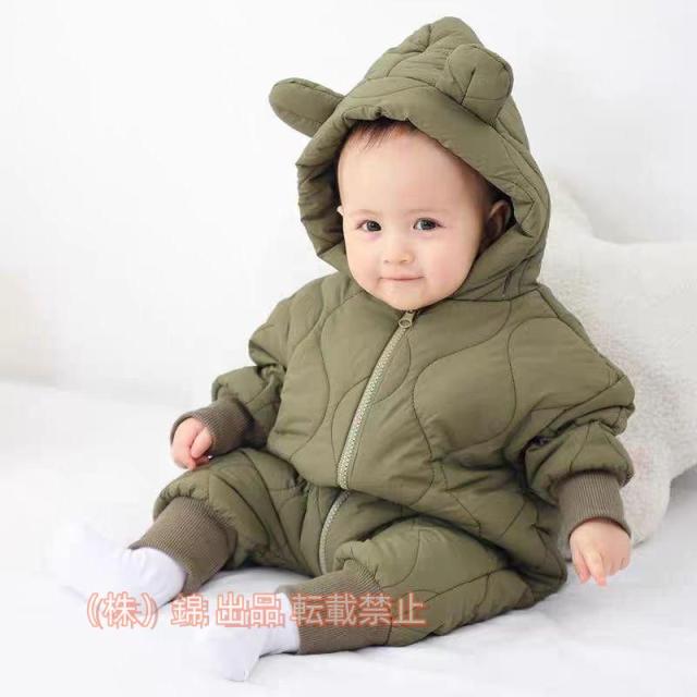 ジャンプスーツ 雪遊び ベビー カバーオール 耳付き くま耳 秋冬 フード付き 中綿 裏ボア アウター ロンパース ベビー服 株式会社錦子供服 キッズ 子供 赤