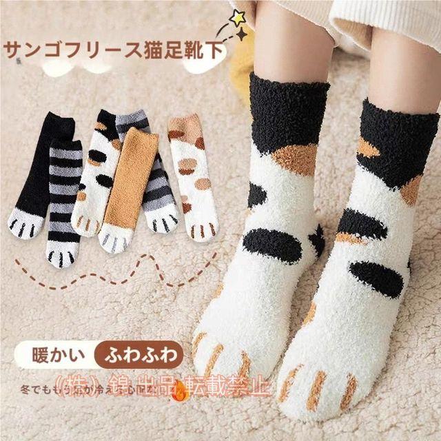 靴下 ソックス 6足セット レディース もこもこ 猫 ネコ 厚手 防寒 ルームソックス 秋冬 モコモコ 冷え取り株式会社錦 クルーソックス あったか