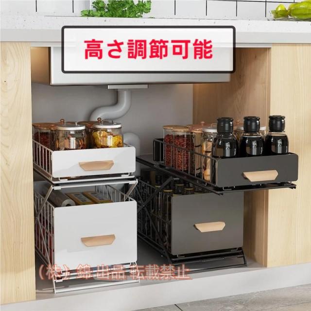シンク下ラック スライド 収納棚 引き出し シンク下収納バスケット ストッカー 折りたたみ ラック 株式会社錦 メッシュ スパイスボトル 組み立て不要 高さ調整