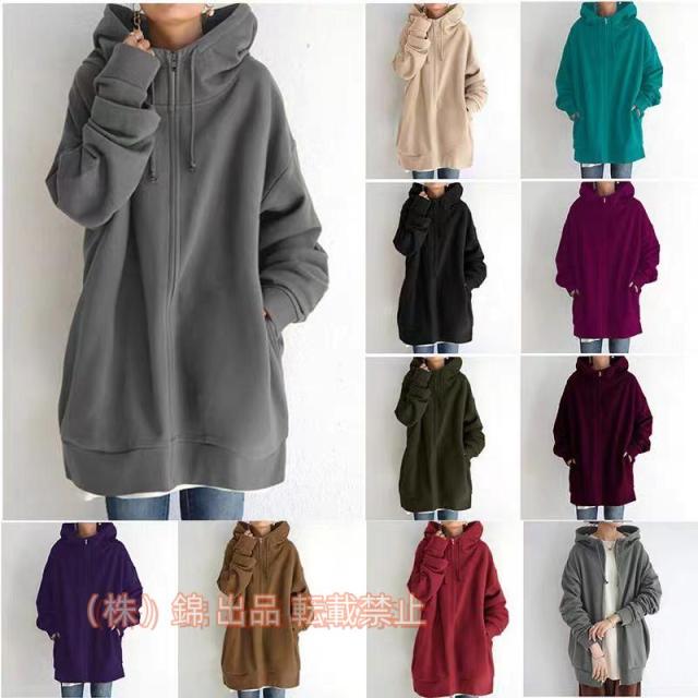 パーカー レディース 前開き ゆったり トップス アウター 上品 秋冬 裏ボア 暖かい コート 裏起毛 株式会社錦ボアパーカー フード付き スウェット