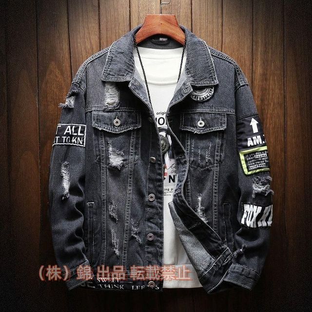 デニムジャケット メンズ ジャケット 英文柄 Gジャン アウター ダメージ加工 長袖 カジュアル ブルゾン株式会社錦 春秋服 大きいサイズ お兄系 お洒落