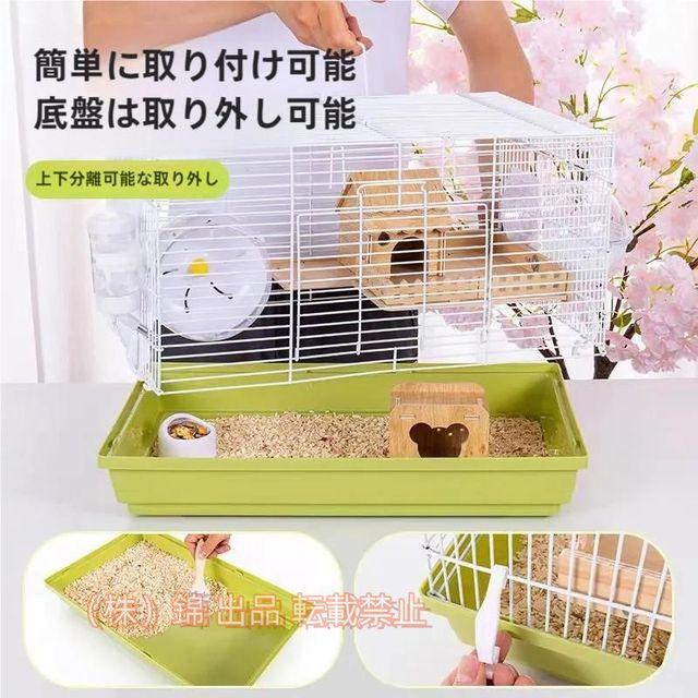 【商品内容】 ケージ本体、隠れ家2個、食器、80ml給水器、回し車、ハシゴ、二階の板、外部トイレ