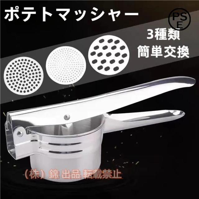 ポテトマッシャーポテトライサーラスポテト用ステンレス製簡易型成型機手動絞りフルーツマッシャージューサー野菜株式会社錦食品ストレーナー3つの密度多機