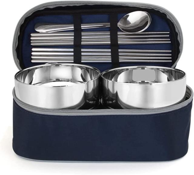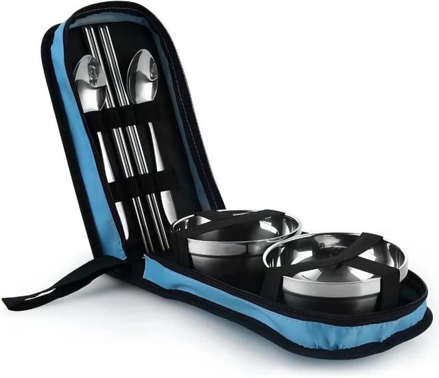 【便利な設計】収納バッグ付き、高品質の牛津布は丈夫で長持ちし、携帯が便利です。お弁当、ランチタイム、通勤、通学、アウトドア、キャップ、旅行等に最適です。ステンレス製食器セット、耐久性が強く、安全衛生、エコ、ポータブル、スペースを節約、洗いやすく、保管や持ち運びが便利になります。日常のお手入れがとても簡単です。