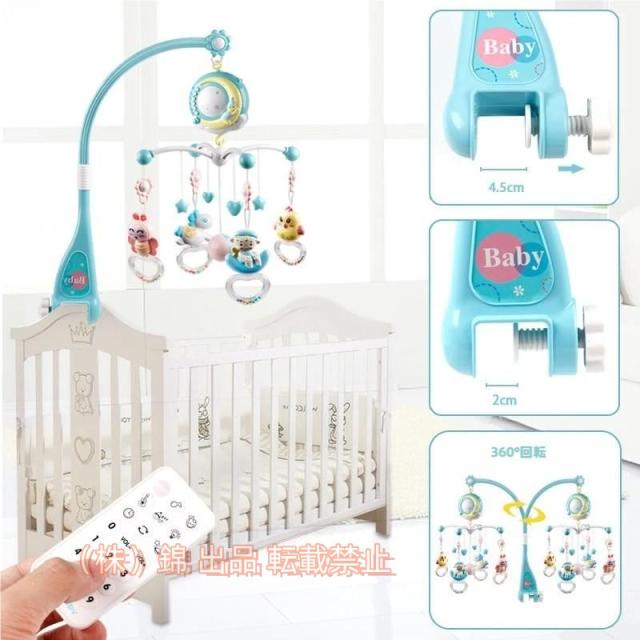ベッドメリー ベビーベッドおもちゃ 赤ちゃんメリー ベッドオルゴール 360回転 音楽株式会社錦 投影 リモコン付