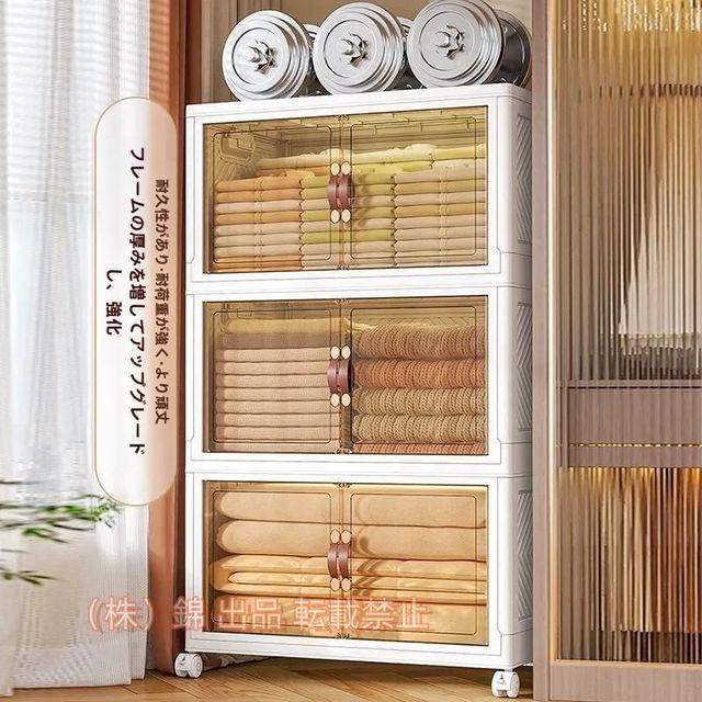 収納ボックス 折畳み 組立簡単クローゼット 収納ケース キャスター/半透明扉付 一体型3段式 株式会社錦防塵 家庭/業務/オフィス用
