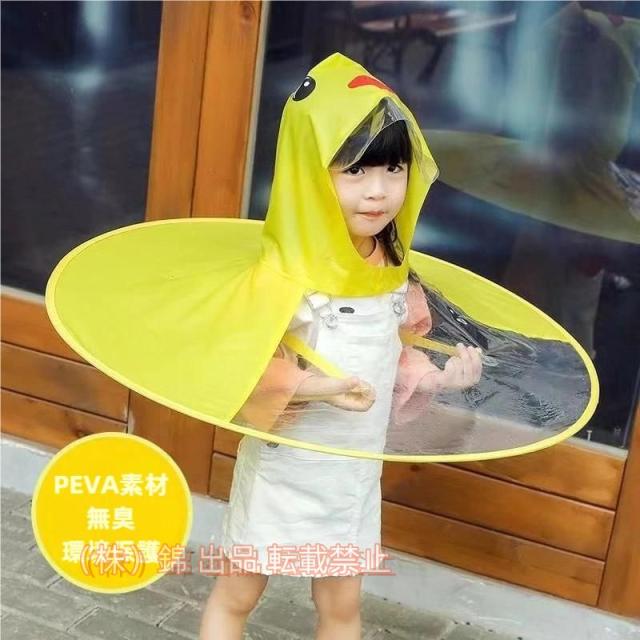 ハンズフリー傘 キッズ 子供用 帽子風傘 キャップレインコート レインハット風 ポンチョ風 雨具 レインウェア株式会社錦 雨合羽 雨がっぱ アヒル カエル かわ