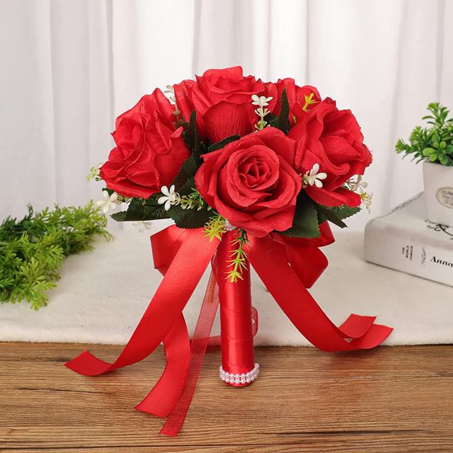 【ロマンスを加える】造花ブライダルフラワー、美しくファッショナブル、鮮やかで本物そっくり、結婚式にロマンチックな雰囲気を加えます。 花嫁をより高貴でエレガントにし、結婚式をより暖かくします。 新郎新婦様とゲストの素敵な思い出を作ることができます。