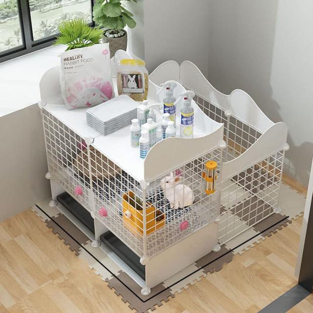 ウサギの檻ウサギ小屋ラビットサークルペットフェンスドア付透明犬猫うさぎバリアゲート小動物フェンス小犬ケージ株式会社錦うさぎのスッキリおそうじケージ組立
