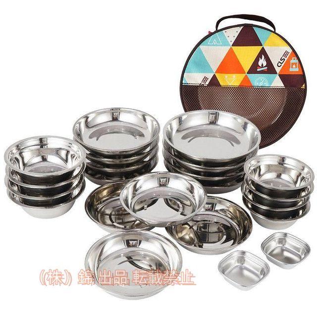 アウトドア キャンプ バーベキュー お皿セット ステンレス お椀 小鉢 ポータブル 軽量 株式会社錦 収納袋付き プレートボウル 16点セット