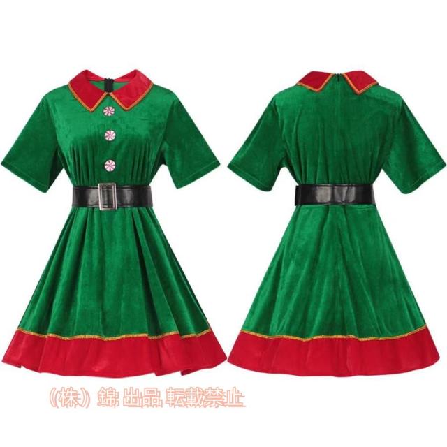 サンタ コスプレ クリスマスツリー衣装 ミニワンピ ベルト付 レディース コスチューム 仮装 ワンピース サンタコス 株式会社錦演出服 ワンピース 大人用 可愛い