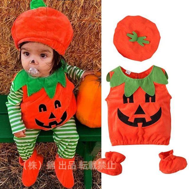 3点セット赤ちゃんハロウィン衣装子供コスプレ仮装かぼちゃベビーロンパースカバーオール女の子男の子株式会社錦パンプキンコスチューム子供用ハロウィン