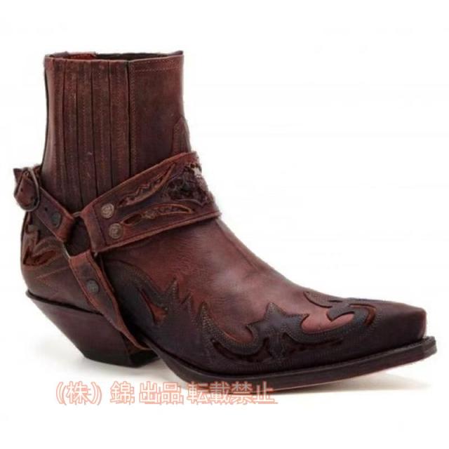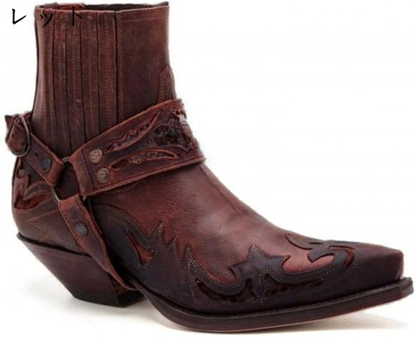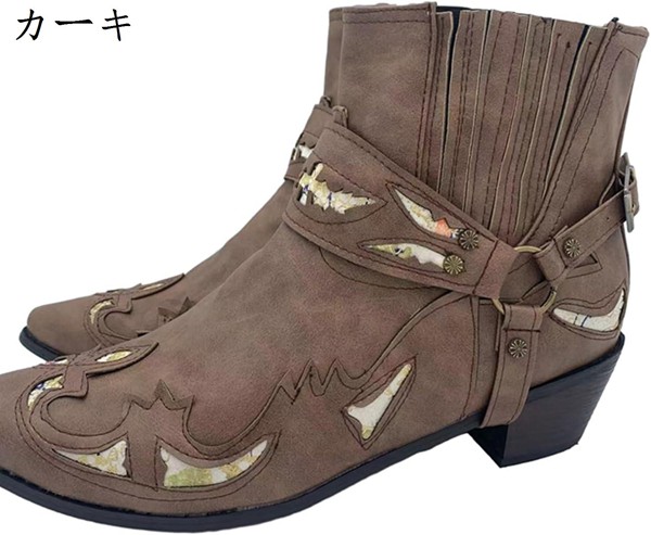 ウエスタンブーツ メンズ 乗馬ブーツ 騎士ブーツ ショートブーツ ポインテッドトゥ 太めヒール ローヒール 株式会社錦大きいサイズ 短靴 ライダース