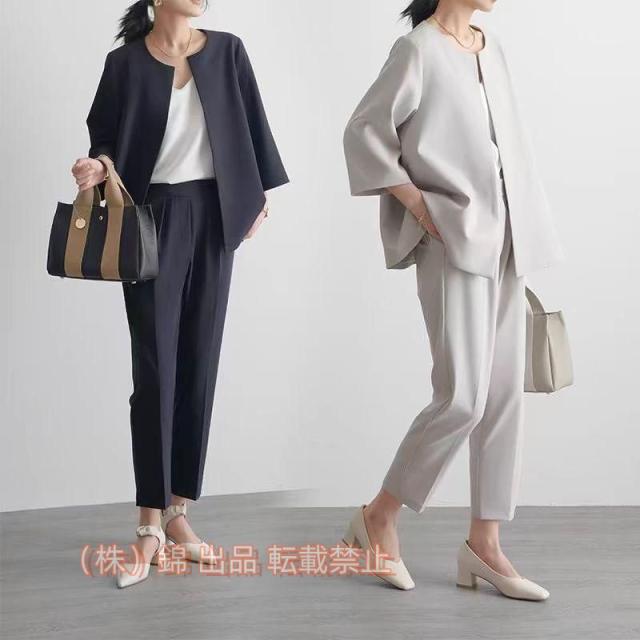 セレモニースーツ 40代 スーツ レディース 入学式 卒業式 母 ママ 服 30代 50代 パンツスーツ株式会社錦 黒 コーデ 体型カバー ビジネス 通勤