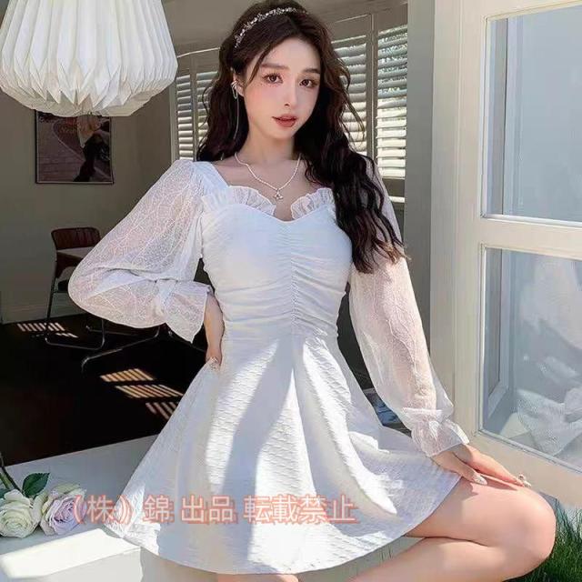 体型カバーできるエレガントな韓国風袖シースルーワンピ水着