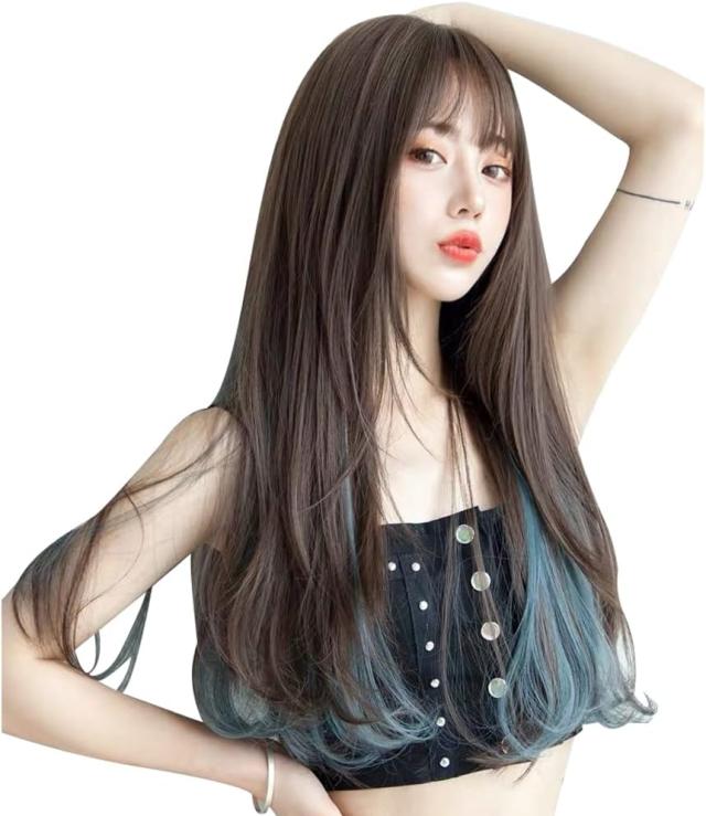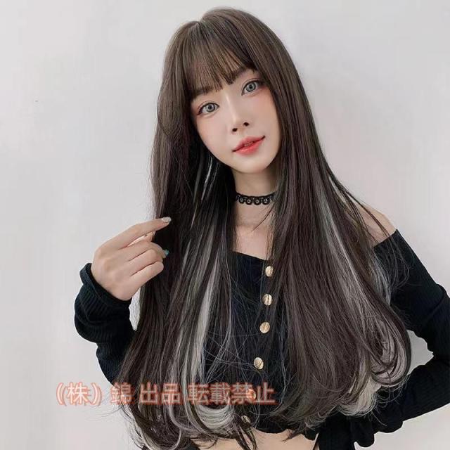 ウィッグ ロング インナーカラー かつら レディース 原宿 フルウィッグ 女性 小顔効果 自然 透け感 空気感 株式会社錦 巻き髪 ネット付き 普段使い
