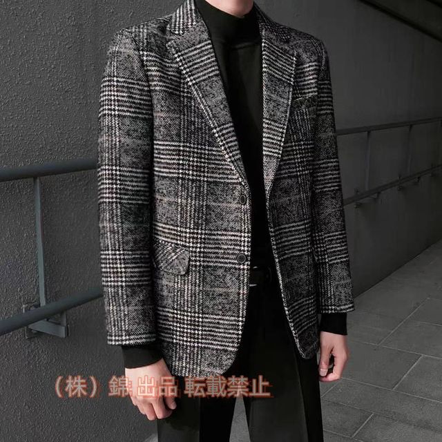 テーラード メンズ スーツジャケット 厚手 グレンチェック テーラードジャケット ブレザー チェック柄 スーツ スーツトップス カジュアルスーツ