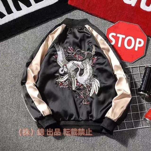 商品名:スカジャン メンズ 男女兼用 横須賀 刺繍 ブルゾン 鶴 サテン 光沢 カジュアル リバーシブル フライトジャケット レディース アウター 春 秋 長袖