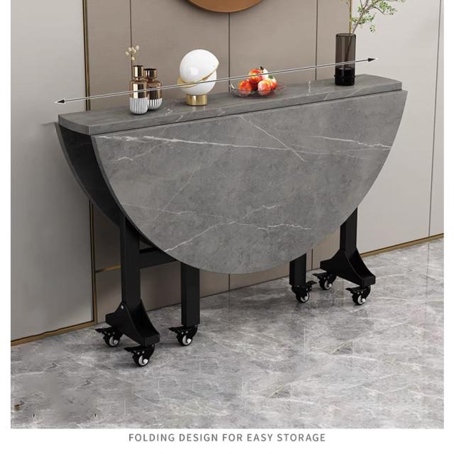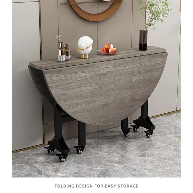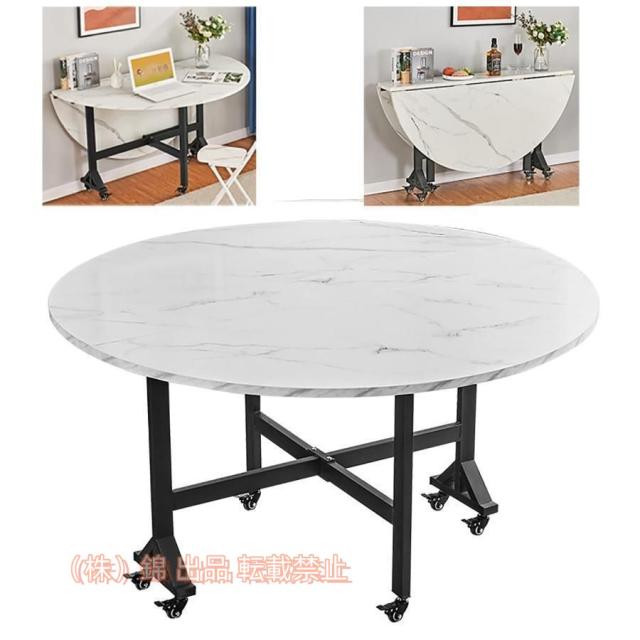 【拡大サイズ】丸いテーブル高さ75cm、直径100cm/120cm/140cm。直径100cmの丸テーブルは4人用、直径120cmのテーブルは6人用、直径140cmのテーブルは8人用です。【特徴】全開使用、半開使用、全折の3つの状態があります。 ダイニングテーブルを半分広げたり、全部広げたりすると、2人用だけでなく、4人用、6人用、8人用にも適しています。半分広げたり、完全に折りたたんでも、壁に寄せて収納できるので、場所をとらず、デイリーユースに使えます。【材質】天板は厚さ24mmの木板を使用しており、丈夫で耐久性に優れています、防水、防油、防傷、防汚、防湿、耐熱。ブラケットは金属スチール製。【キャスター付き】移動がより省力化され、ブレーキを押すことで固定できます。キャスターを使いたくない場合は、取り外して通常通りご使用いただけます。【多目的テーブル】食事をする、コーヒーを飲みながら休み空間や作業空間まで提供してくれます。キッチン、カフェ、事務所、休憩室、会議室などのスペースでも相応しい多用途なテーブルです。