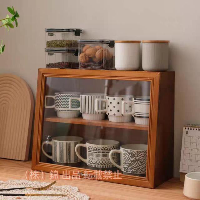 ミニ食器棚 木製 ガラス扉 おしゃれ キッチン収納棚 卓上食器棚 調味料ラック ミニカップボード 株式会社錦 上置き カウンター上収納棚 キッチンカウンター 棚