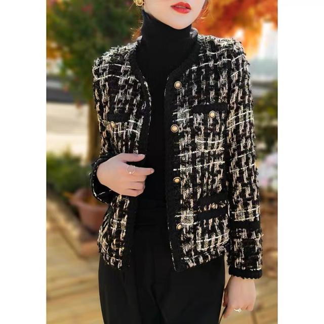 ノーカラージャケットブラック系ツイード上品セレモニーショートジャケット株式会社錦卒業式結婚式ほっそり効果大20代30代40代50代60代ミセス