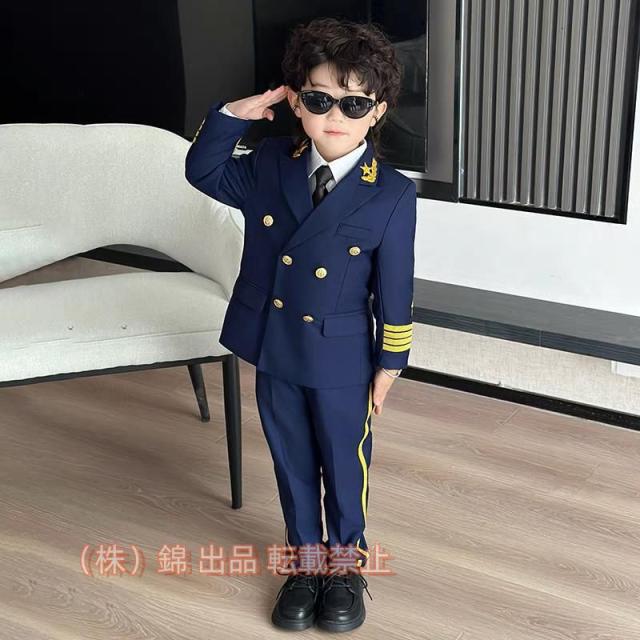 男の子スーツパイロット飛行士キャプテンユニフォーム制服長袖ブレザー錦上下セットアップネクタイ襟章付き長袖半袖ワイシャツ追加可おしゃれ男