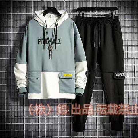 上下セット メンズ パーカー 長袖 秋服 配色 切り替え スポーツ 部屋着 カジュアル スウェット上下