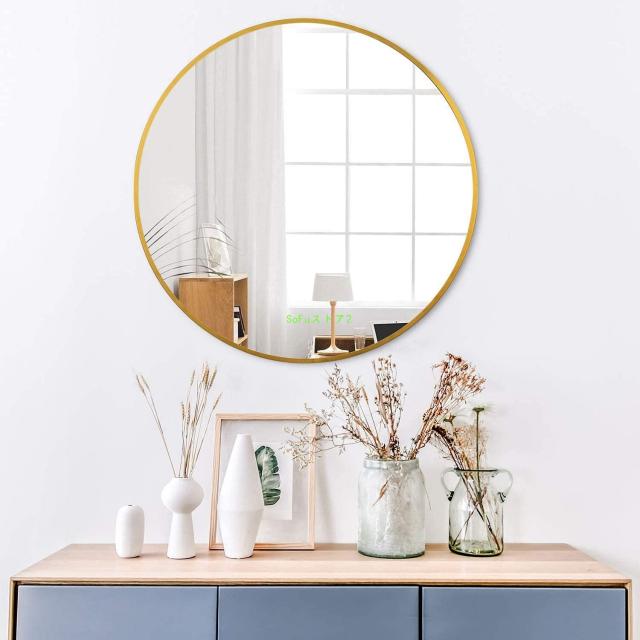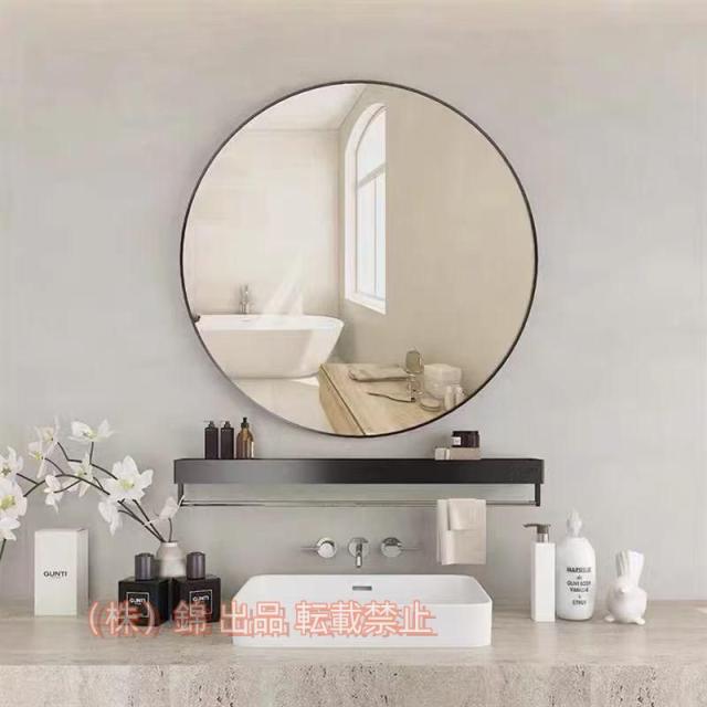 姿見鏡 壁掛け鏡 丸 バスルームミラー 全身鏡 アルミ 壁掛けミラー おしゃれ 洗面 鏡 化粧 株式会社錦 玄関 ウォールミラー ゴールド 直径50CM
