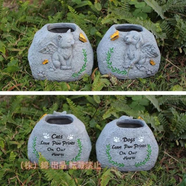 犬の記念石 犬の墓標 動物の像 植物コンテナ 植木鉢 ペットの墓石 庭 パティオ株式会社錦 屋外 庭 芝生用