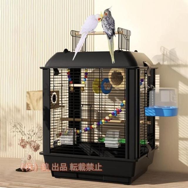 鳥かご 小型 持ち運び スクエアブラックディープドオウムケージ、大きくて掃除しやすい鳥かご、フードボックス付きの鳥の別荘株式会社錦インストールが簡単
