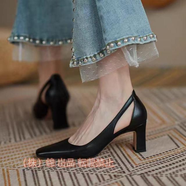 ◎トレンドのスクエアトゥとクロコ柄型押しデザインが大人女性にぴったり。