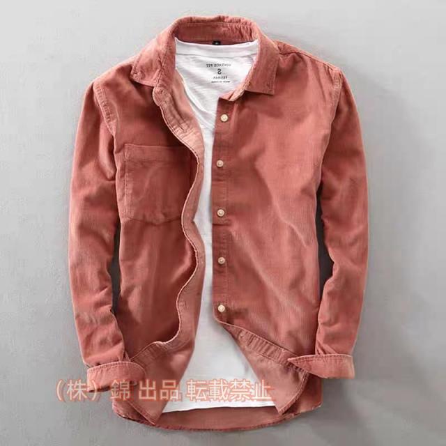 シャツメンズ長袖ビジネス裏起毛ボアコーデュロイシャツ厚手ピンクメンズシャツカジュアルシャツボタンダウンシャツ株式会社錦暖かい防寒着秋秋服冬冬服