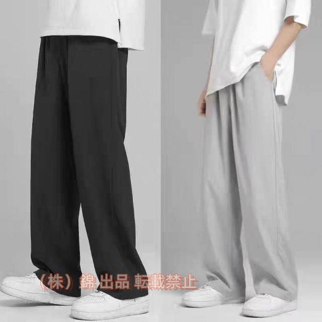 イージーパンツ メンズ ワイドパンツ ロングパンツ ストレート ウエストゴム 株式会社錦 長ズボン 男性 黒 灰 シンプル モノトーン おしゃれ カジュアル 無地