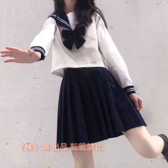 セーラー服紺色長袖半袖女子高生蝶結ぶ3点セットコスプレJK制服スカート上下セット女子制服株式会社錦正統派本格二本文化祭学?歳卒業式歓送迎