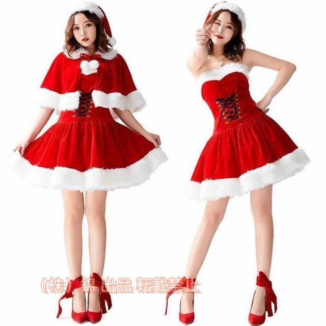 サンタコスプレレディースかわいいワンピース3点セットポンチョケープサンタ衣装セクシーサンタコス株式会社錦衣装サンタ帽子大人サンタクロース衣装コス