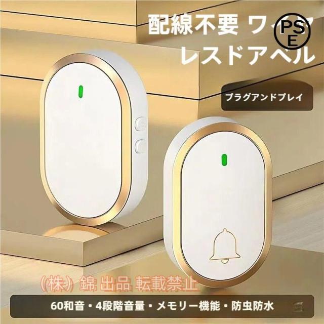 ワイヤレスチャイム電池不要玄関チャイムインターホン自動発電呼び鈴介護飲食店浴室などに適用防水防塵無線玄関ドアベル株式会社錦最高300Mの無線範囲