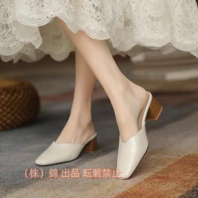 ミュールパンプス レディース ミュールサンダル スクエアトゥ ミュール Vカット 太めヒール PU カジュアル 履きやすい 株式会社錦歩きやすい おしゃれ 大人 美脚