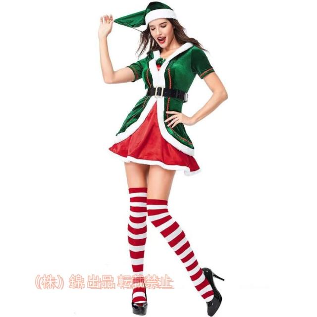 サンタ衣装 クリスマス 可愛い サンタ?様 サンタクコス コスチューム グリーン レディースサンタ コスプレ 株式会社錦クリスマス精霊 精霊仮装 洋服 M-XXL 大