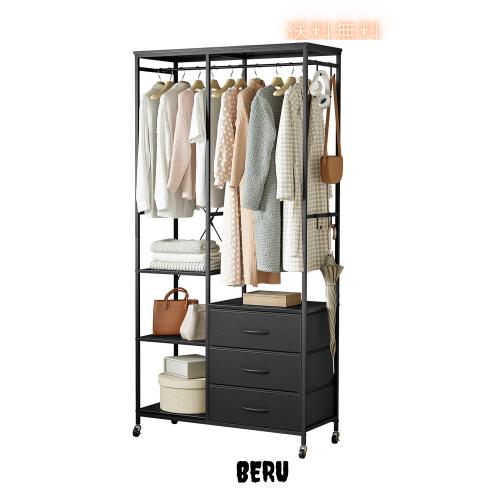 SINNONAKA ハンガーラック 引き出し付き ワードローブ 衣装棚 押し入れ 棚付き 棚板可動式 収納付き 収納ラック 大容量 頑丈 wardrobe 全