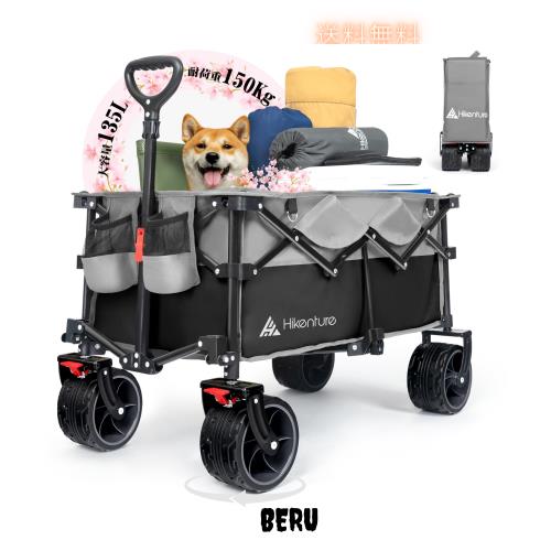 Hikentureキャリーワゴン【10CM極太タイヤ?ブレーキ付】大容量135L 耐荷重150kg コンパクト 自立収納 ワンタッチ収束型 アウトドアワゴ