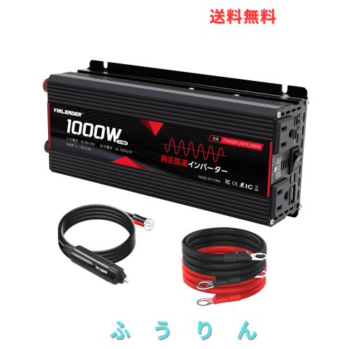 Yinleader 実出力1000W インバーター 正弦波 DC24v直流をAC100V交流に変換 瞬間出力1000W 車載 カーインバーター ACコンセント×2、USBポ